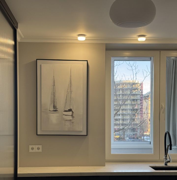 В квартире много естественного света — окна выходят на солнечную сторону.
