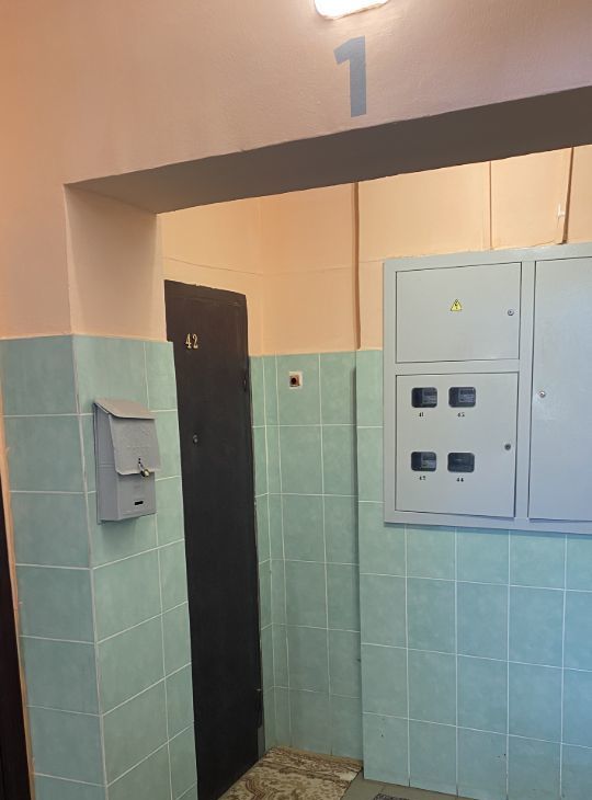 Пол: новая плитка - кухня и коридор, комната - линолеум.