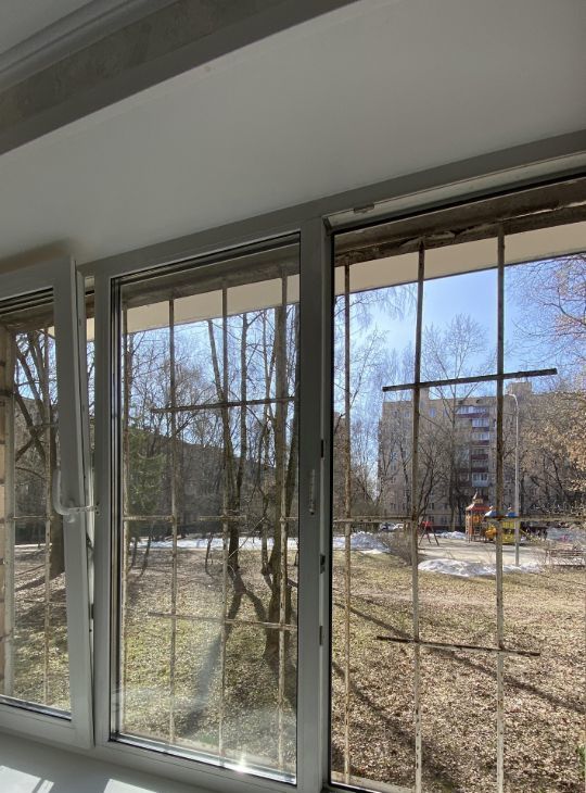 Пластиковые окна (рехау), решетки. Окна выходят в тихий двор с березами и детской площадкой, под окнами никто не ходит.
