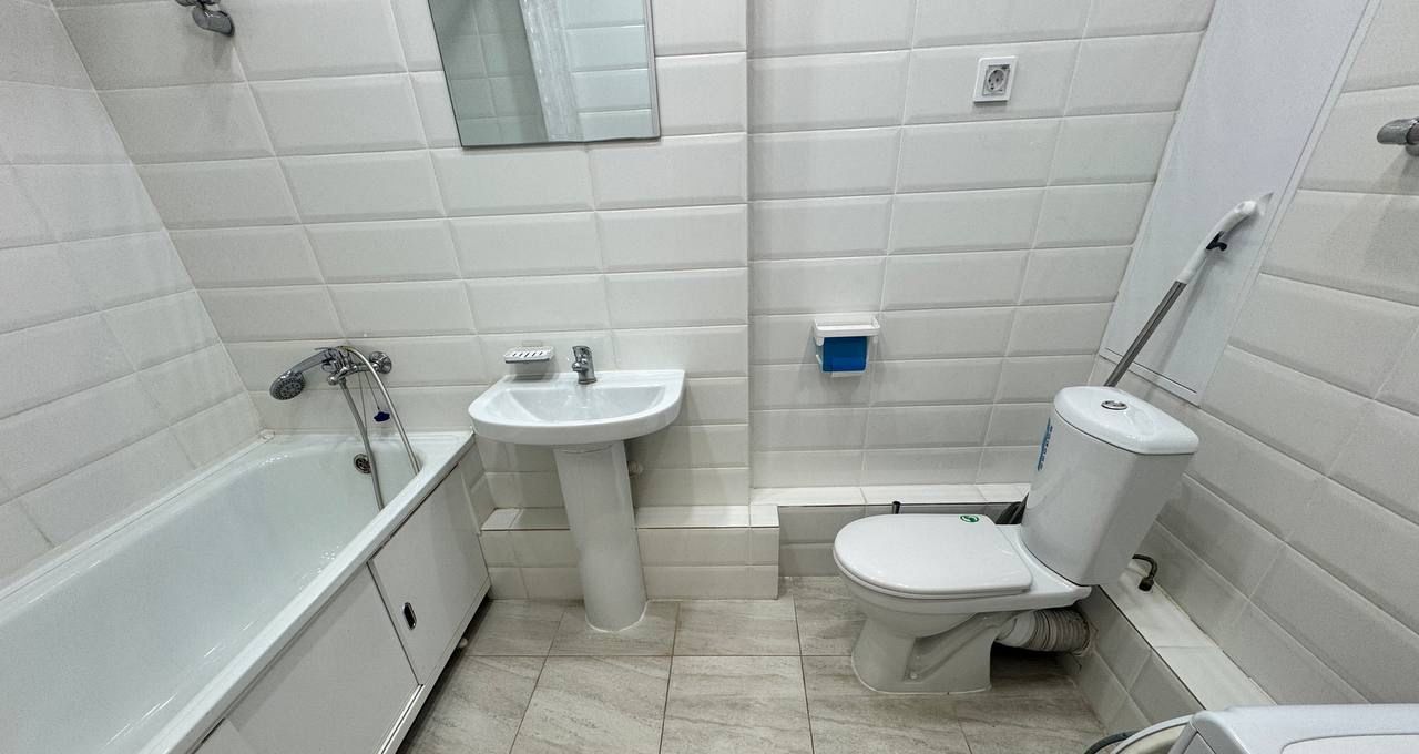Современный ремонт. Квартира полностью готова к проживанию, выполнен современный ремонт. Совмещенный. Выход на лоджию из комнаты.