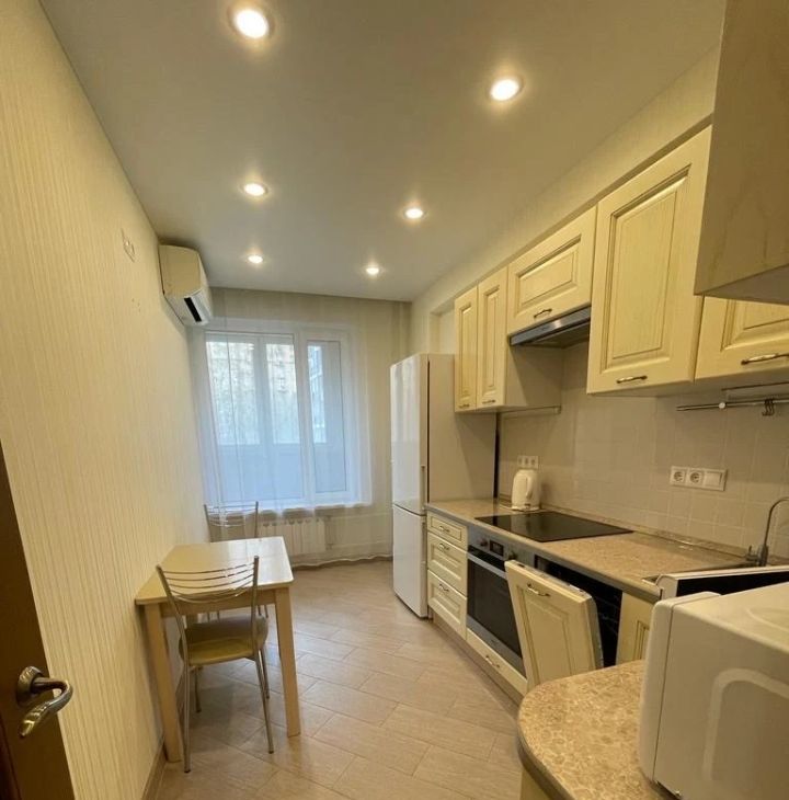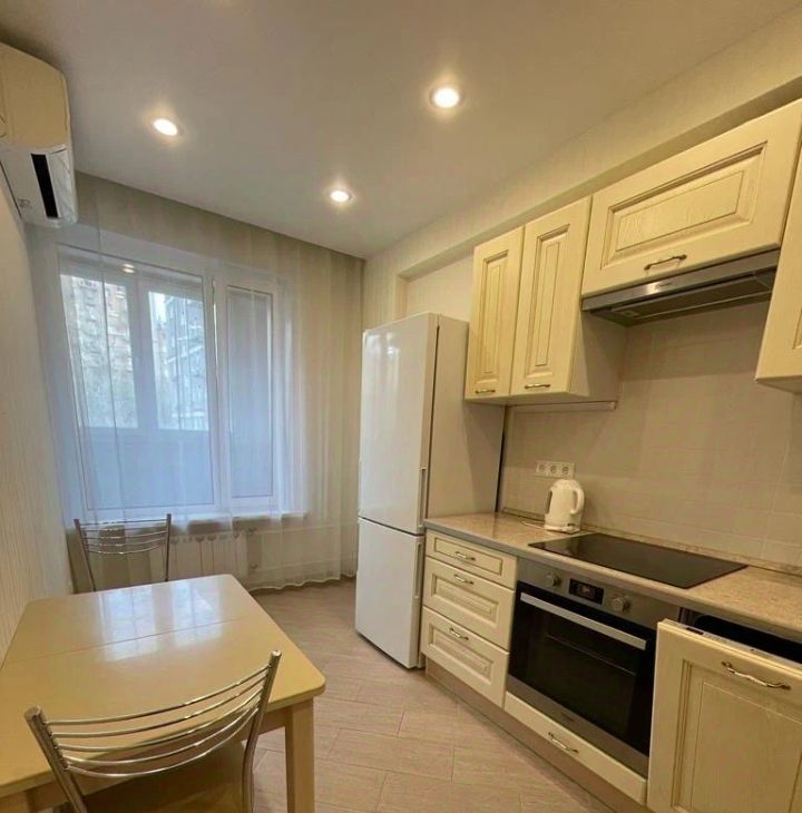 Квартира с евроремонтом, обставлена мебелью как в комнате, так и на кухне. Из техники в вашем распоряжении кондиционер, холодильник, посудомоечная и стиральная машины. Санузел совмещенный, оборудован душевой кабиной. Есть лоджия, окна выходят во двор, что обеспечивает тишину и уют.