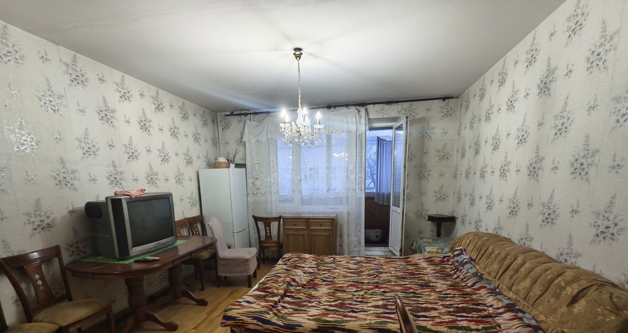 В комнате установлен телевизор, имеется выход на застеклённую лоджию с видом на двор. Санузел раздельный.