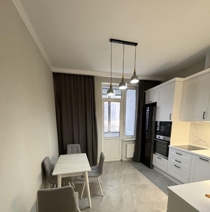 Сдается уютная однокомнатная квартира на девятом этаже монолитного дома бизнес класса в ЖК Большая семерка, построенного в 2024 году. В квартире выполнен свежий евро ремонт, никто не жил. Вся мебель и техника новые. Просторная кухня площадью 13 м² оборудована всей необходимой техникой, включая холодильник , духовой шкаф, микроволновую печь, посудомоечную машину.