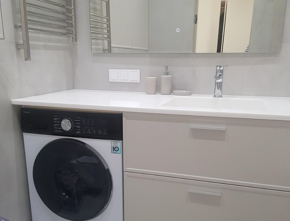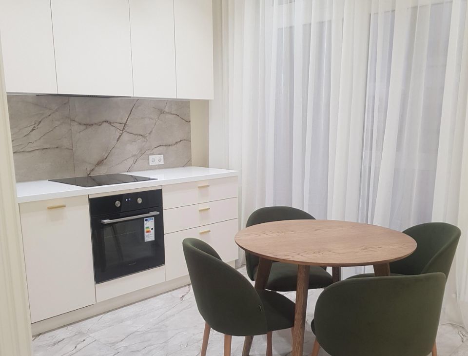 Однокомнатная квартира с дизайнерским ремонтом. Вся бытовая техника присутствует. В комнате двухспальная кровать, диван, шкаф,телевизор. Лоджия от пола до потолка остекление. Рядом много магазинов. За отдельную цену есть подземная парковка и оборудованная кладовку.