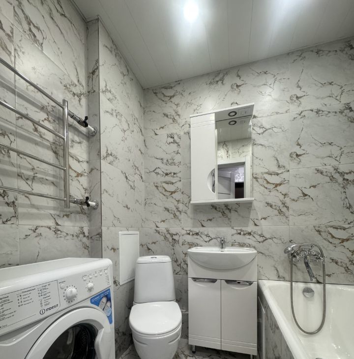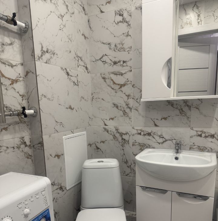 Сдаётся уютная однокомнатная квартира с качественным ремонтом. Окна выходят во двор, что обеспечивает тишину и спокойствие. В квартире имеется вся необходимая мебель для комфортного проживания: стиральная машинка, холодильник, шкафы, диван, окна ПВХ и т.д. Санузел совмещённый, оборудован ванной.