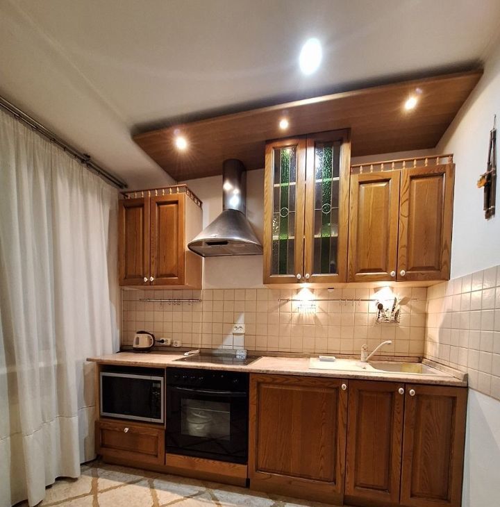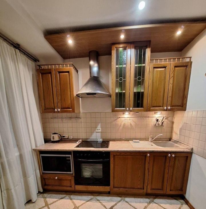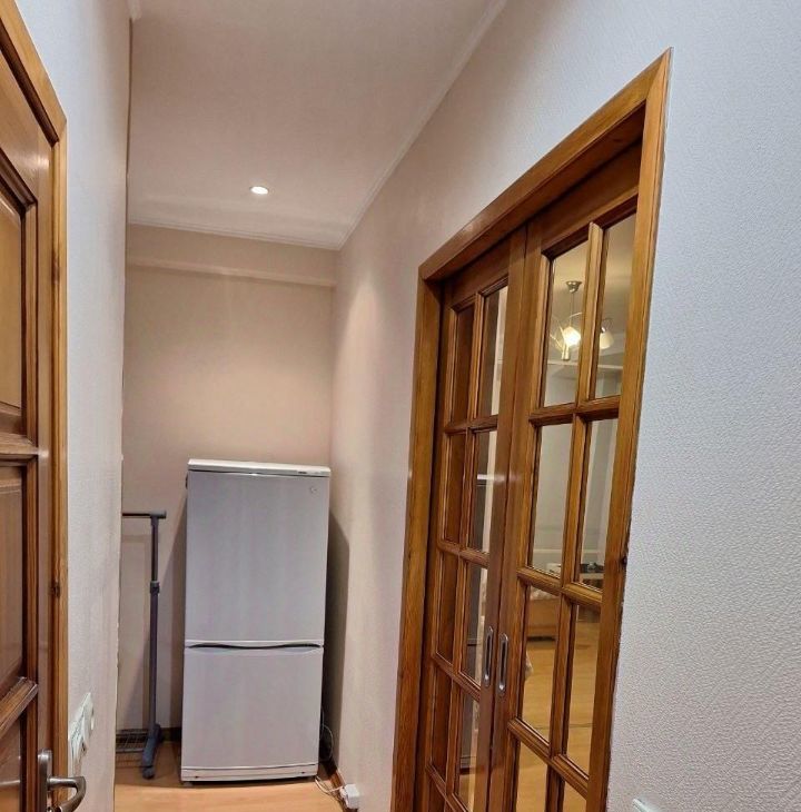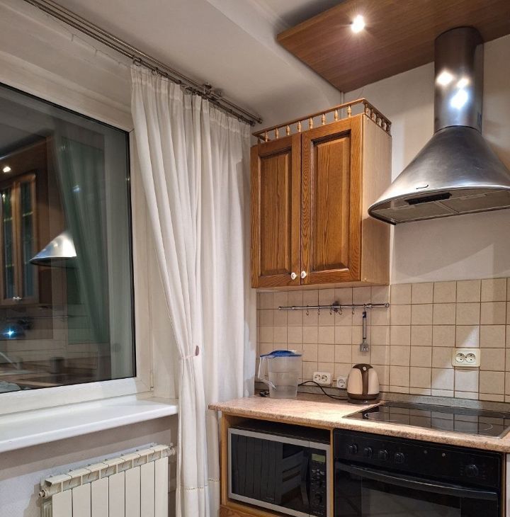 Кухня оснащена необходимой бытовой техникой, включая холодильник, стиральную машину. Установлена современная вытяжка и эл.плита, микроволновка. В ванной комнате совмещенный санузел с душевой кабиной.