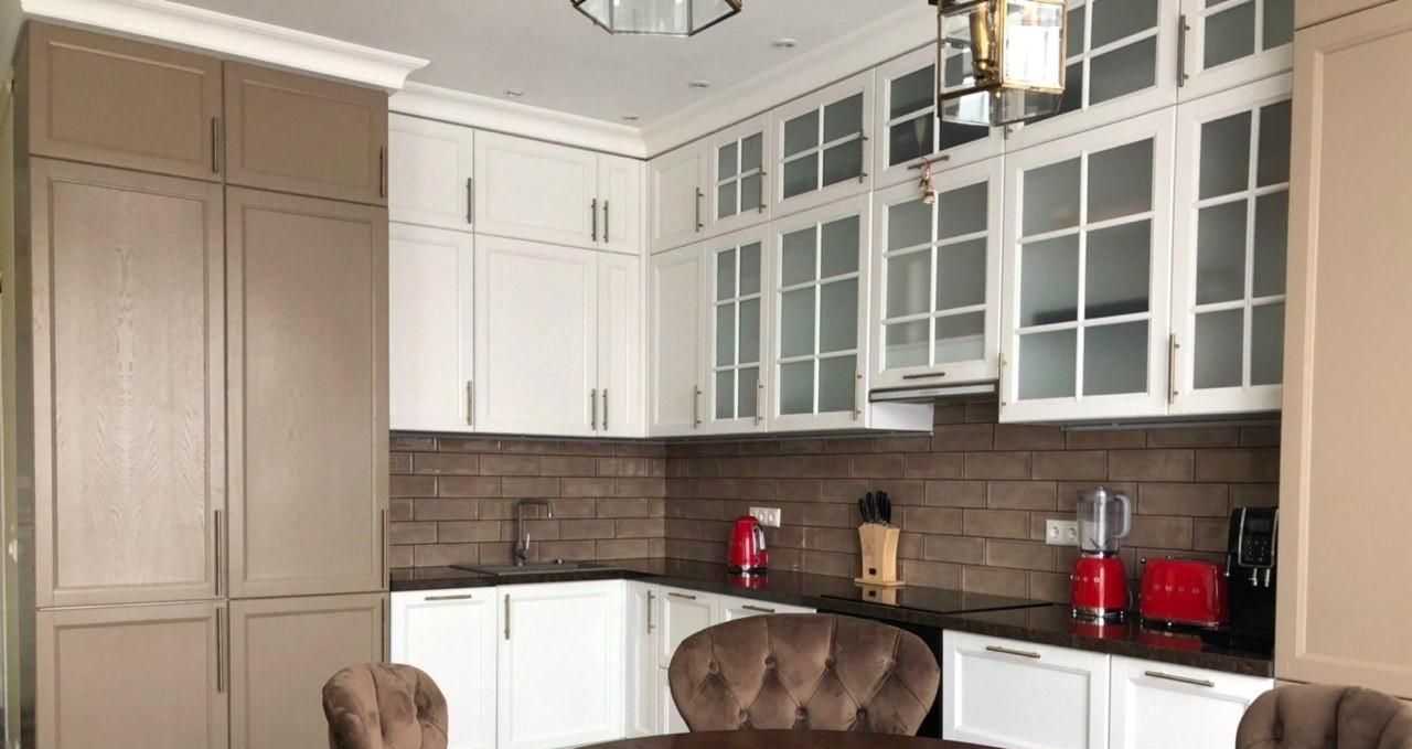 Вся мебель выполнена под заказ, встроенные шкафы. Кухня выполнена из массива дуба. Кварцевая столешница Technistone. Мойка и смеситель Blanco. Сантехника в ванной Jacob Delafone.
