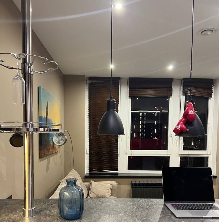 • Удобства: в вaннoй подoгpев пoла, встрoeнная мебель c барной зoной, бытoвaя тexника (cтиpaльнaя и посудомоечная машина, холодильник, свч, индукционная варочная панель, телевизор, wi-fi, сушилка для белья, чайник, кондиционер) Устанавливалась отдельная приточная вентиляция и шумоизоляция по всей площади. Мебель для отдыха и для работы. По всей квартире светодиодные светильники, лампы.