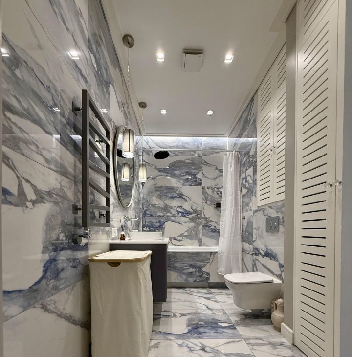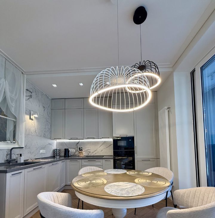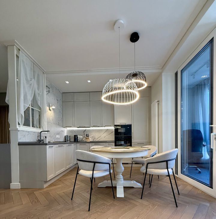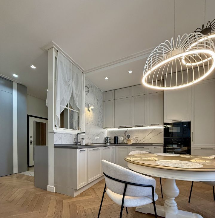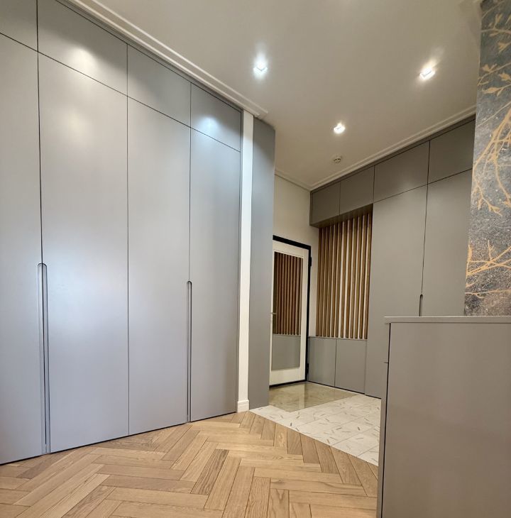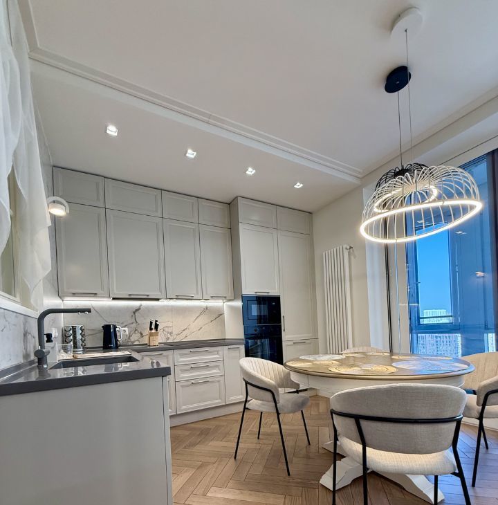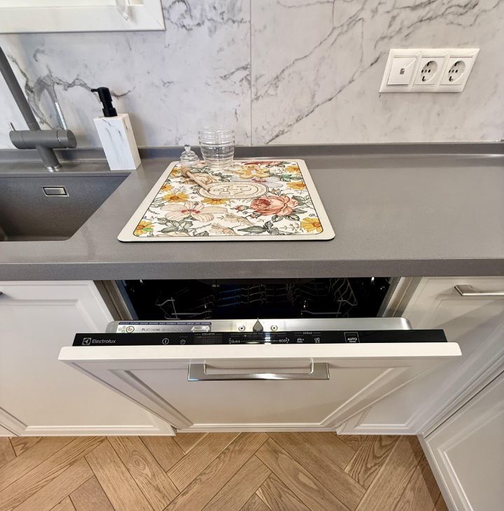 Вся техника встроенная: холодильник, микроволновка, посудомойка, варочная поверхность. Стоит очиститель воды (можно воду пить прямо из под крана).