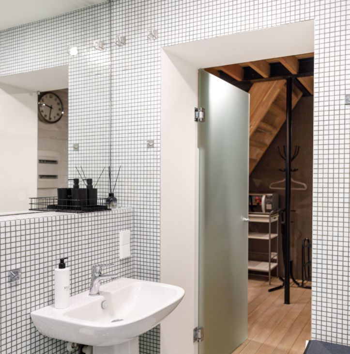 1 этаж - прихожая, гостиная с кухонной зоной, ванная комната с душевой кабиной;