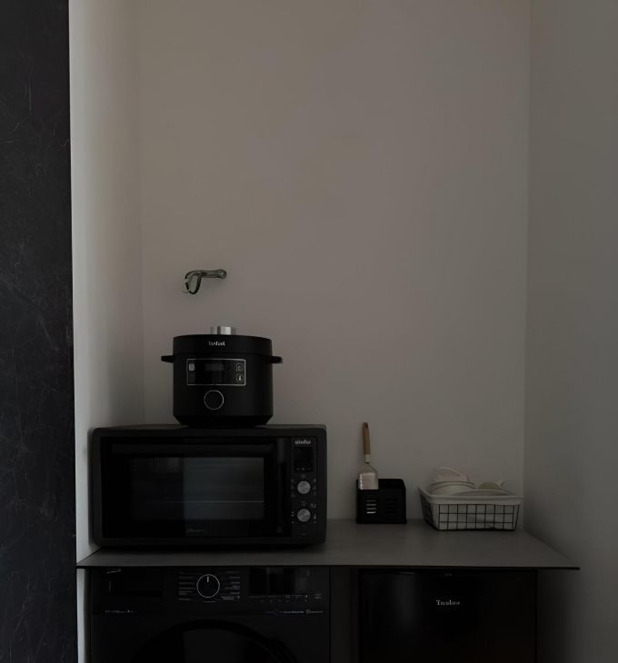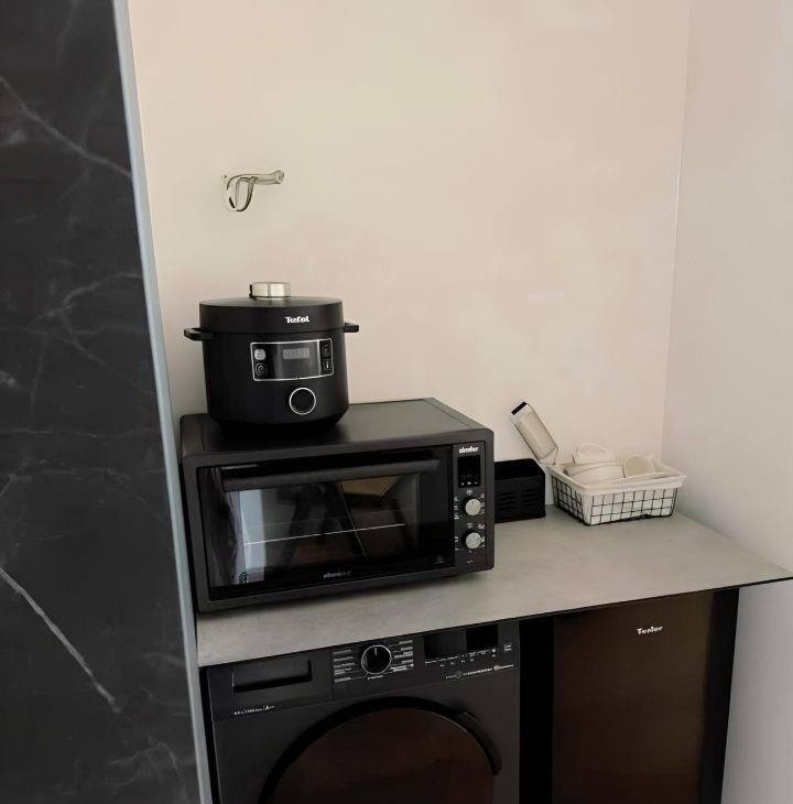 Квартира обладает современным дизайнерским интерьером. В квартире есть бытовая техника (стиральная машина и холодильник), а также необходимая мебель.