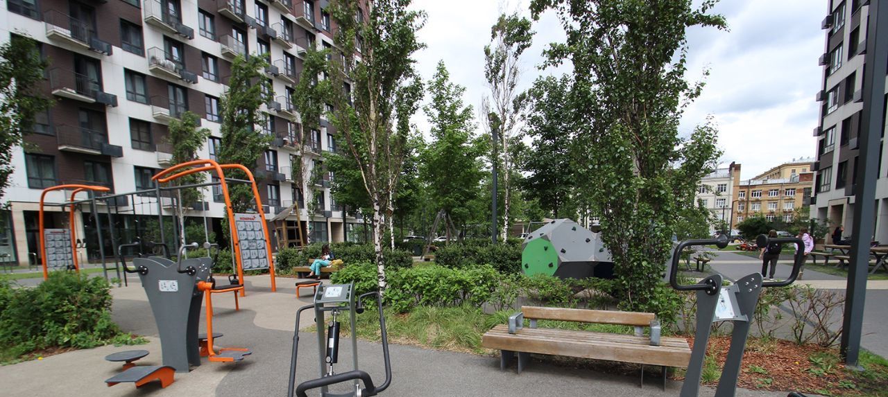Двор закрытого типа, без машин, попасть во двор или на территорию можно только по ключам доступа или через приложение в цифровом виде. Круглосуточное видео наблюдение за двором, подъездом и этажом. Своя круглосуточная охрана у ЖК. Очень зелёный, ухоженный и оборудованный двор, есть спортивные тренажеры, баскетбольная и теннисная площадки. Внутри двора спа, круглосуточные аптеки, спортивные залы, кондитерские, медицинские учреждения.