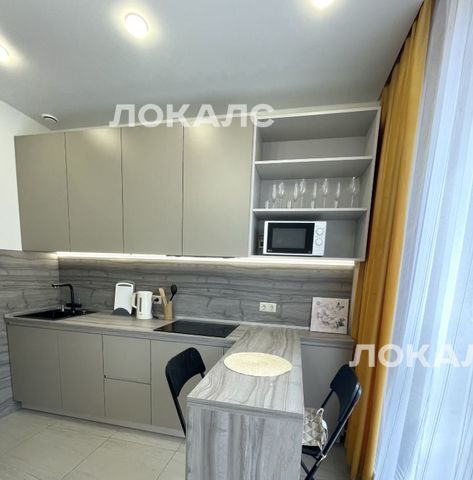 В квартире просторная светлая кухня с панорамными окнами в пол и открытым балконом, совмещенный санузел и комната с тремя зонами: для работы, отдыха и сна. Кухня укомплектована всей необходимой техникой немецкого бренда BOSCH: холодильник, варочная поверхность (индукция), вытяжка, микроволновая печь. В комнате имеется большая двуспальная кровать с подъемным механизмом (матрас ASKONA), раскладывающийся диван, рабочее место, комод, большой шкаф под одежду, телевизор, кондиционер, пылесос, утюг, гладильная доска. Ванная комната полностью в плитке, укомплектована сантехникой, стиральной машиной Bosch, зеркалом и полотенцесушителем. В коридоре установлен большой шкаф под одежду и обувь.