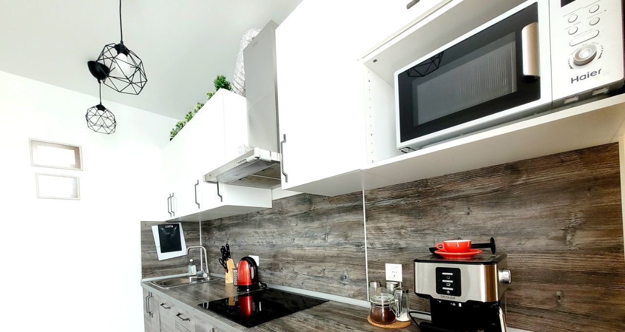 - Просторная кухня с посудой, бытовой техникой (посудомоечная машина, кофемашина) и прочими принадлежностями для приготовления пищи;