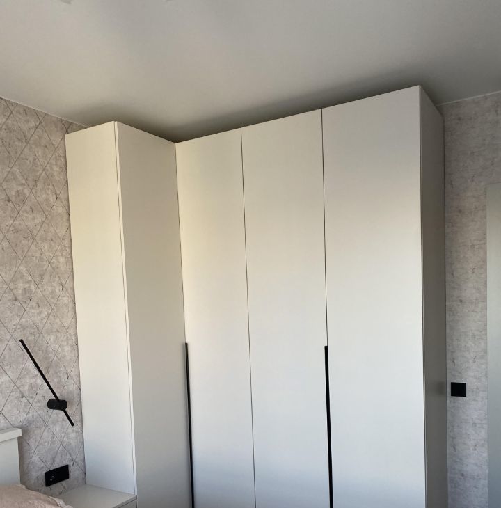 В спальне и прихожей оборудовано много мест для хранения. Кровать с матрасом Икеа.