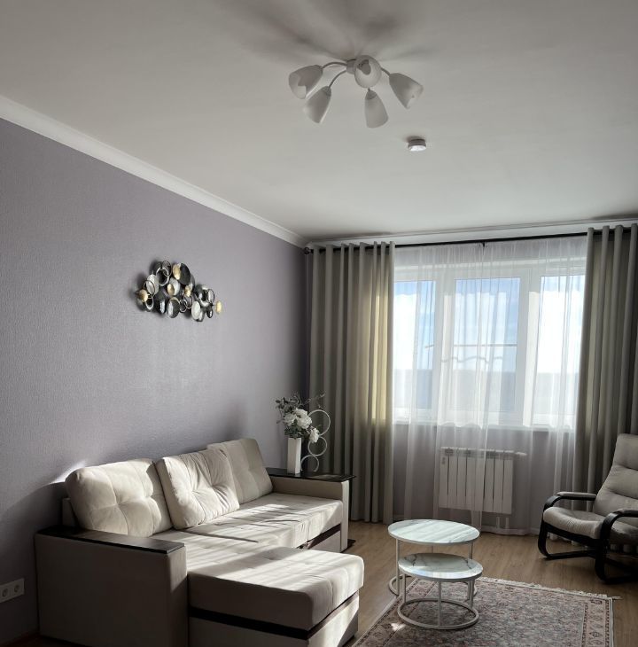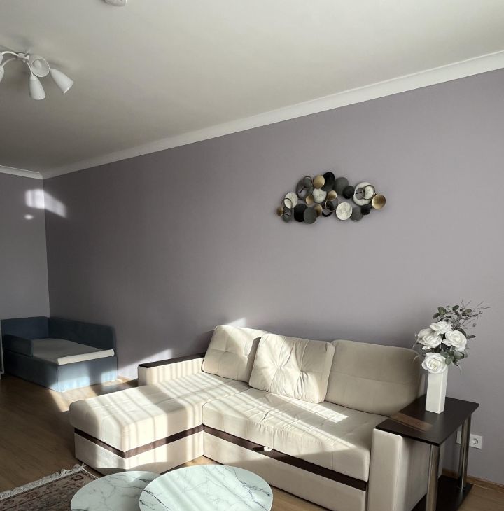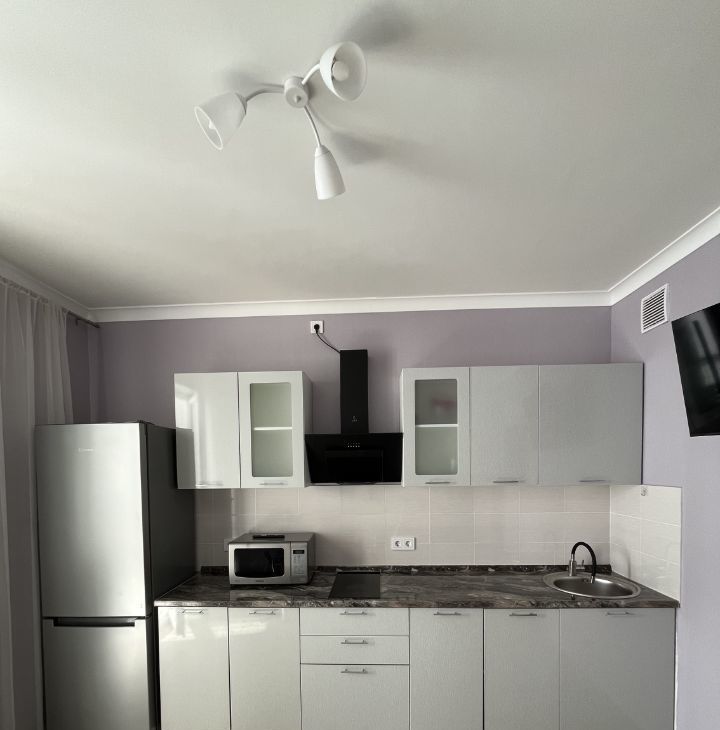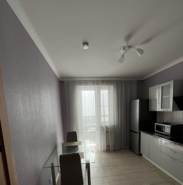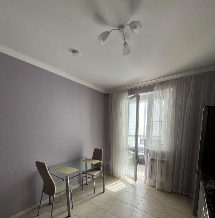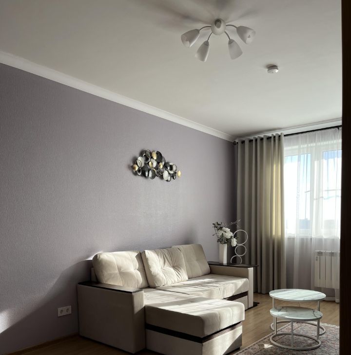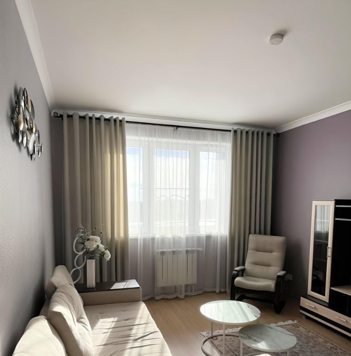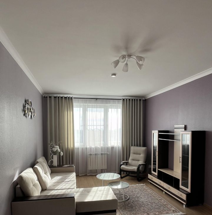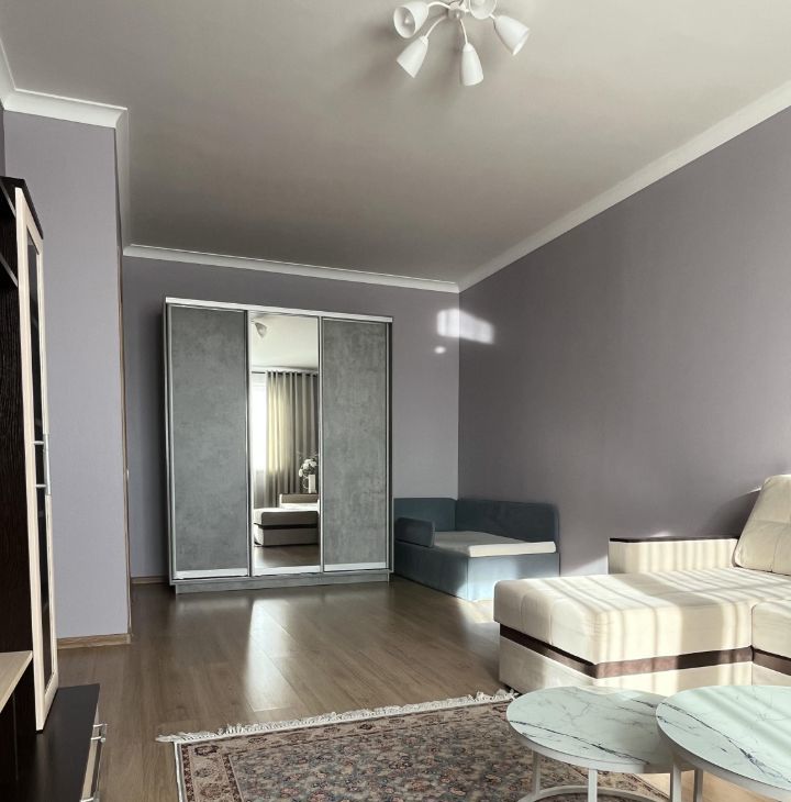 В квартире сделан евроремонт, что создаёт атмосферу уюта и комфорта. Просторная комната обставлена современной мебелью, а кухня оснащена всем необходимым: холодильником, телевизором и стиральной машиной. Санузел раздельный, есть ванна. Окна выходят во двор, поэтому вас не будет беспокоить шум улицы. Высота потолков 2,72 метра, что добавляет ощущение простора.