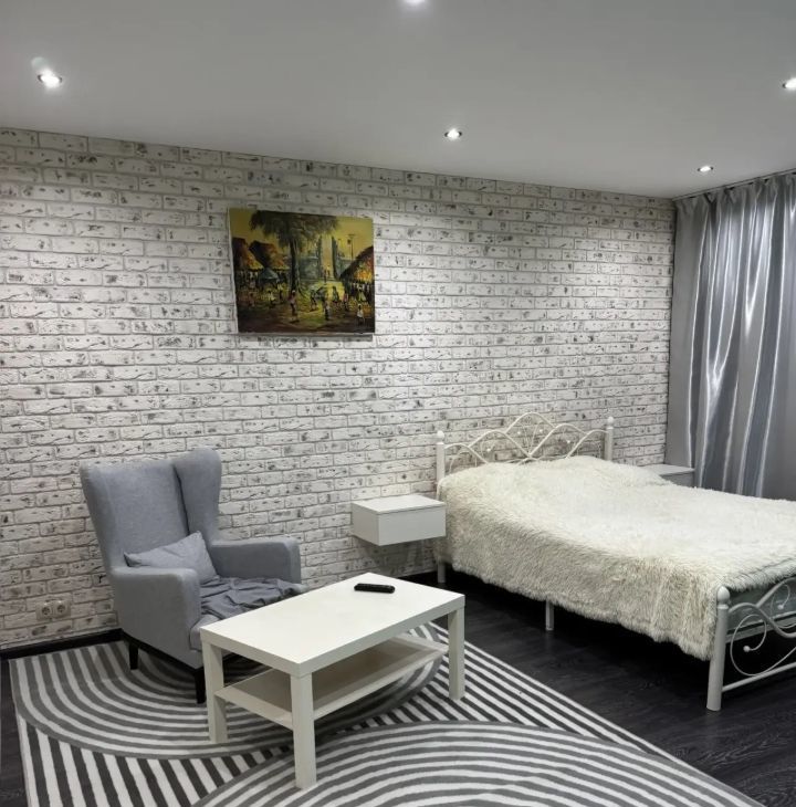 Квартира с дизайнерским ремонтом, полностью готова к проживанию. В комнате и на кухне есть вся необходимая мебель. Из техники холодильник, телевизор и стиральная машина. Санузел совмещённый, оборудован душевой кабиной. Окна выходят во двор, поэтому в квартире тихо и уютно. Есть лоджия, где можно насладиться утренним кофе.