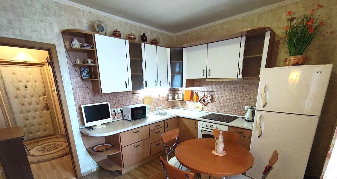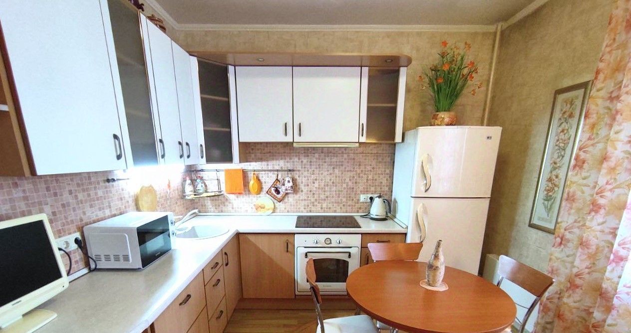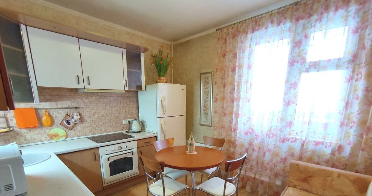 Сдается 1-комнатная квартира 40 кв.м с хорошим ремонтом. балконом, с большой кухней 11 кв.м и комнатой 20 кв.м. В квартире имеется вся необходимая мебель и техника: два телевизора, раскладной двуспальный диван (фабрика 8 марта), много шкафов, стиральная машина, варочная панель с духовым шкафом. вытяжка, холодильник. В квартире уютно, тепло и чисто. Во дворе имеется парковка со шлагбаумом.