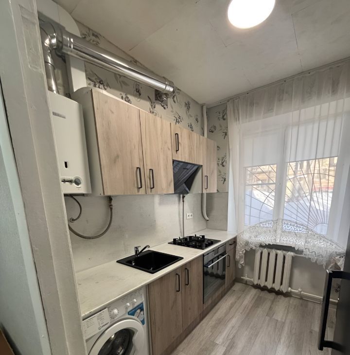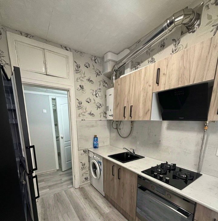 Сдаётся уютная однокомнатная квартира на первом этаже кирпичного дома. В квартире выполнен свежий евро ремонт, что создаёт приятную атмосферу для проживания. Просторная комната оборудована шкафам, кроватью и диваном, а также имеется телевизор. Кухня оснащена необходимой бытовой техникой, включая холодильник и стиральную машину. Совмещённый санузел оформлен в современном стиле.