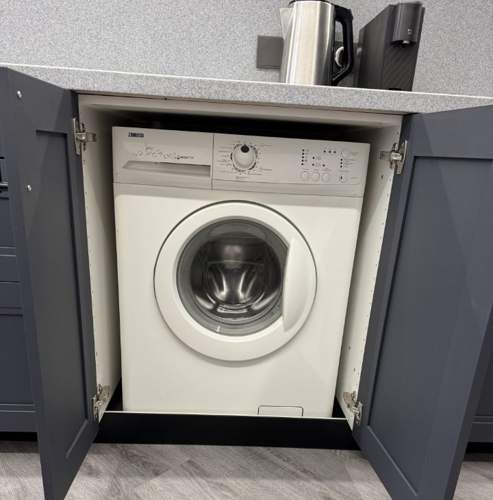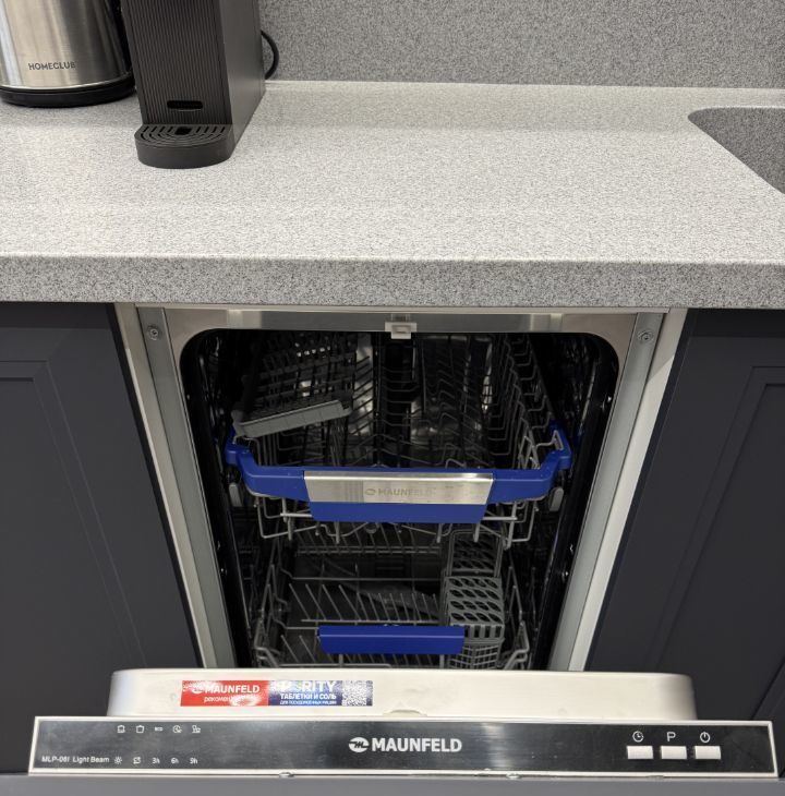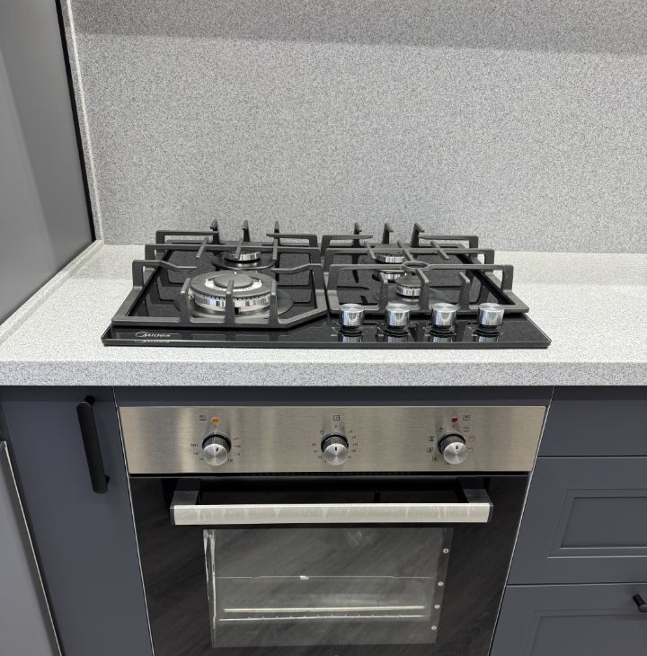 На кухне установлены: холодильник, газовая плита, духовой шкаф, стиральная и посудомоечная машинки.