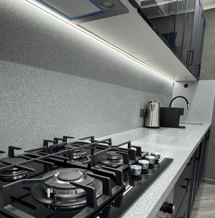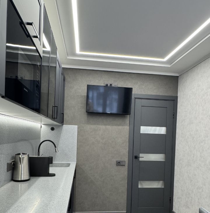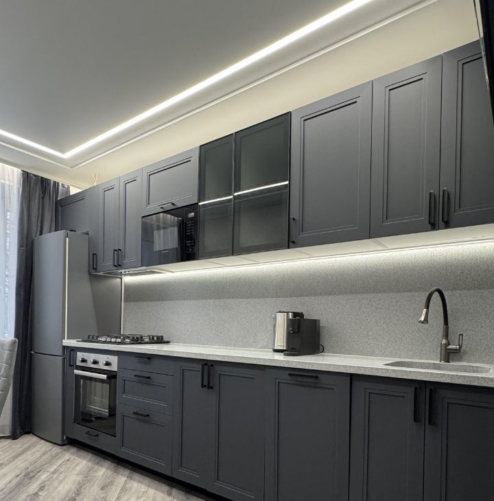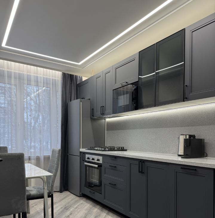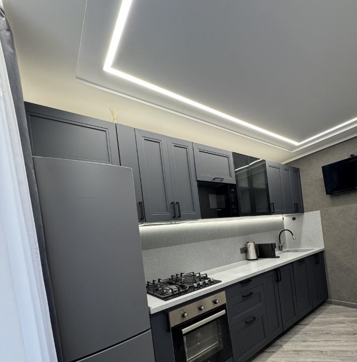В квартире выполнен евроремонт с интерьерной подсветкой, которая создаст уютную или романтическую обстановку после трудового дня.