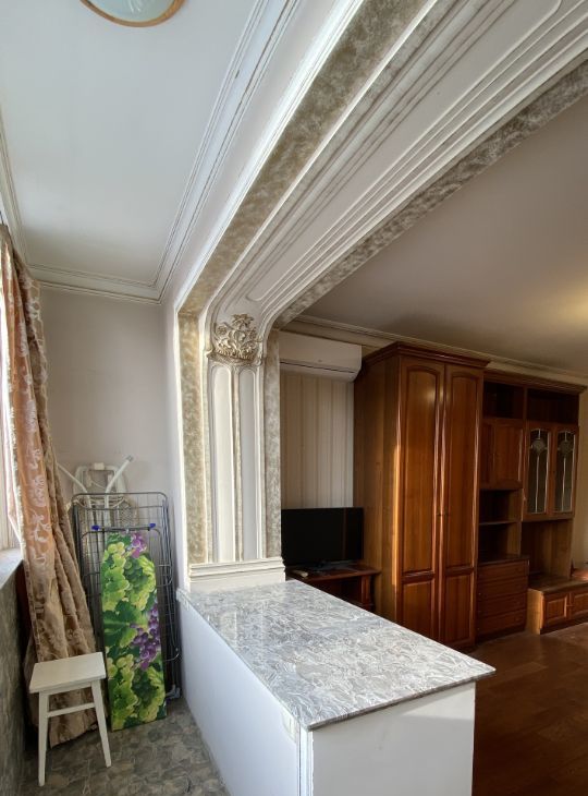 КОМНАТА С АЛЬКОВОМ: объединили с большой лоджией; спальное место покупаем под клиента, современная стенка, КОНДИЦИОНЕР, телевизор.