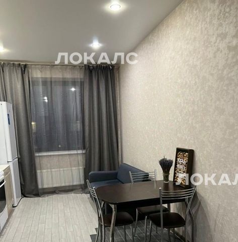 Сдаётся уютная однокомнатная квартира с евроремонтом рядом с метро "Водный стадион". Общая площадь — 42 кв. м, кухня — 10 кв. м. Квартира находится на 24 этаже 26-этажного монолитного дома 2015 года постройки. Высокие потолки 3 метра и окна, выходящие во двор, создают ощущение простора и уюта.