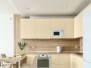 Квартира оборудована всей необходимой для проживания мебелью и техникой: