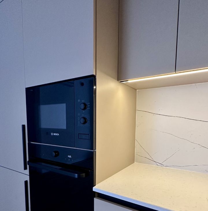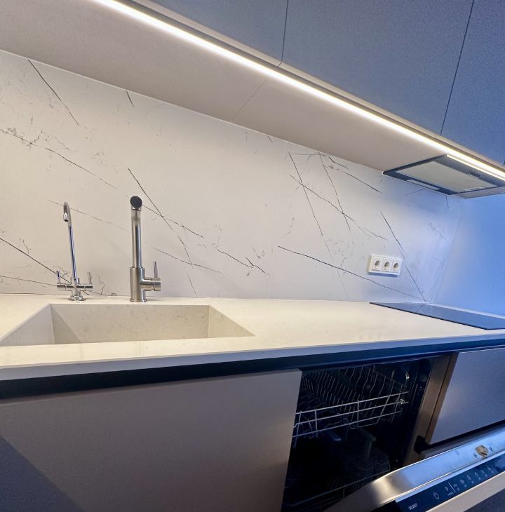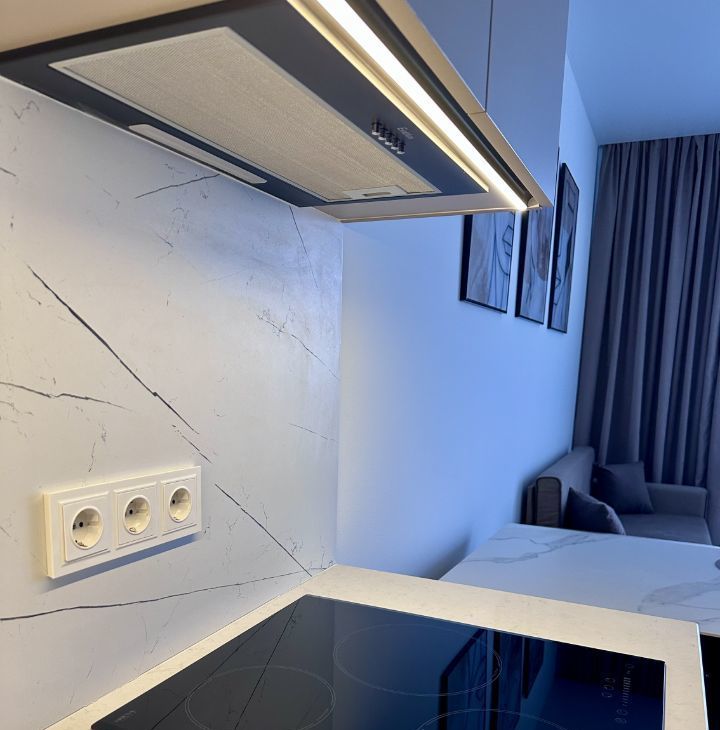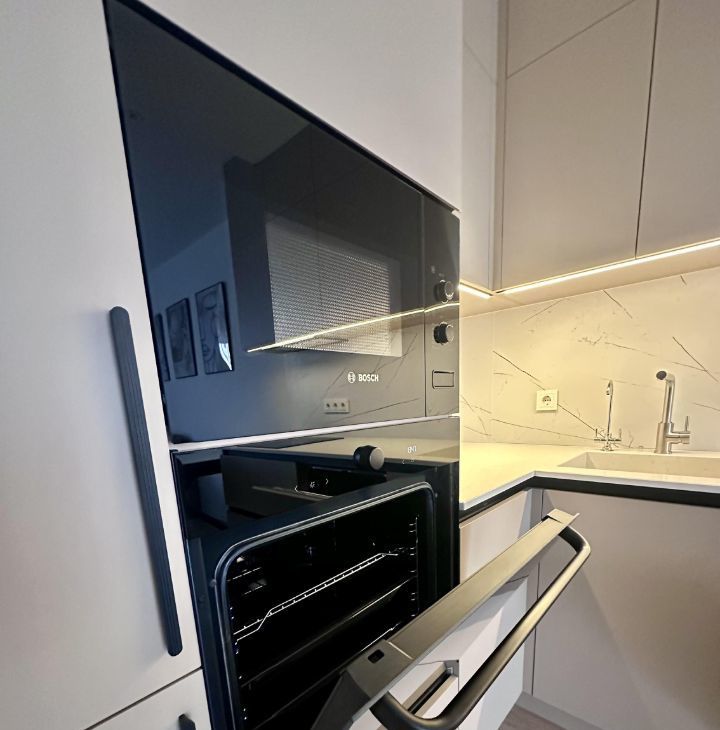 - оборудованная современная кухня со всей необходимой встроенной техникой, включая полноразмерную посудомоечную машину и отдельный фильтр для воды с обратным осмосом;
