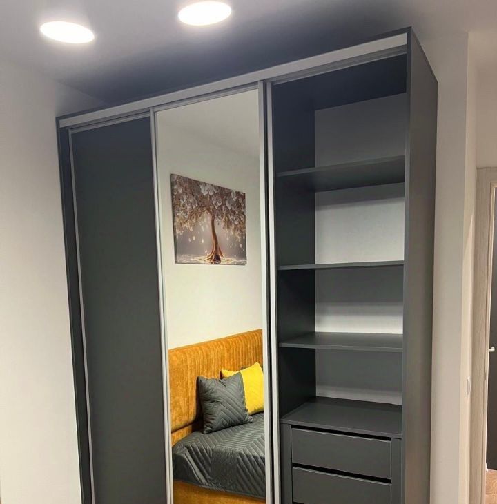 - Спальня оборудована двухспальной кроватью с ортопедическим матрасом, шкафом.