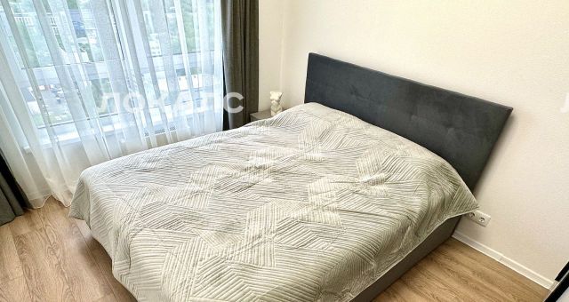 В комнате и на кухне есть вся необходимая мебель. В квартире установлена современная техника: кондиционер, холодильник, посудомоечная машина, телевизор и стиральная машина. Ванная комната оснащена ванной и совмещена с санузлом. Окна выходят на улицу, наполняя квартиру естественным светом.