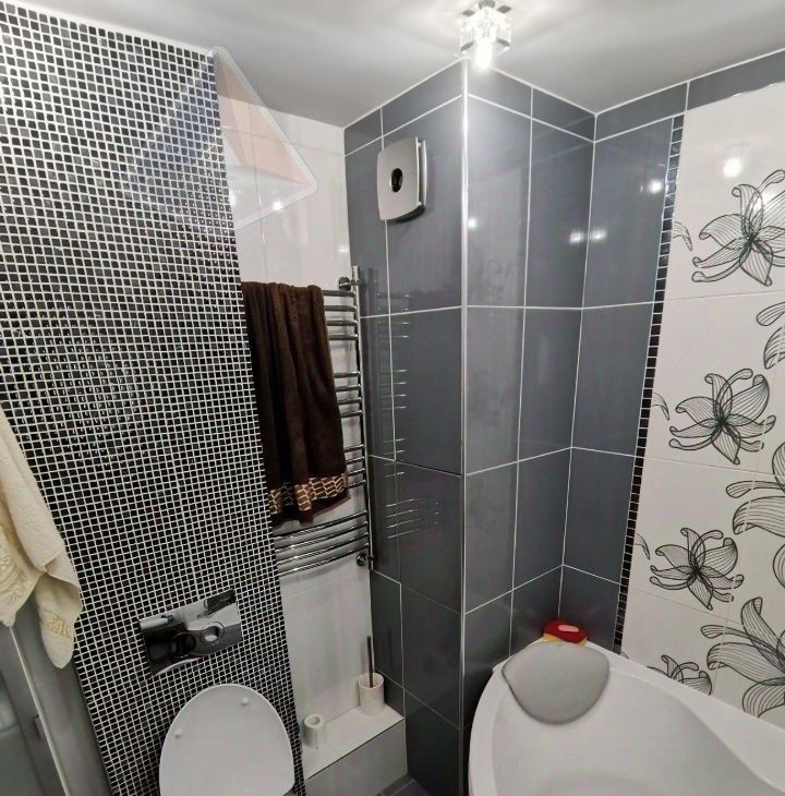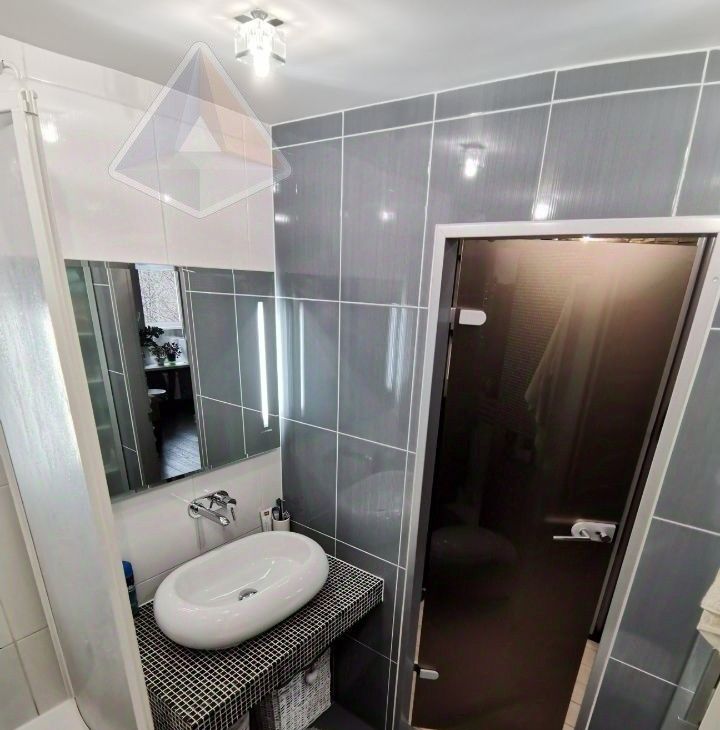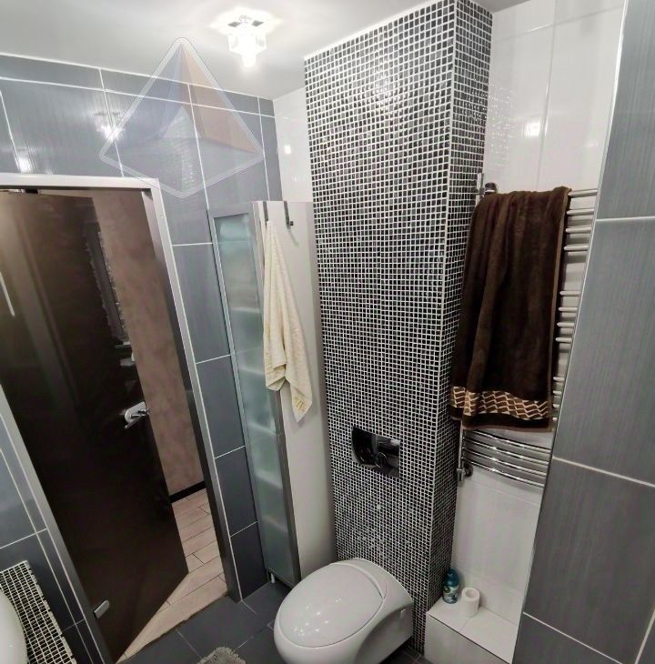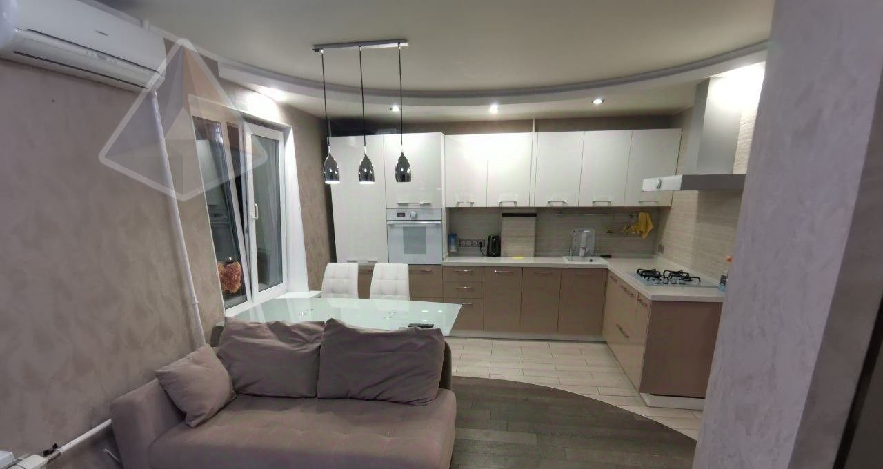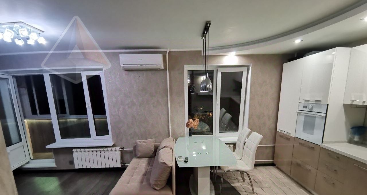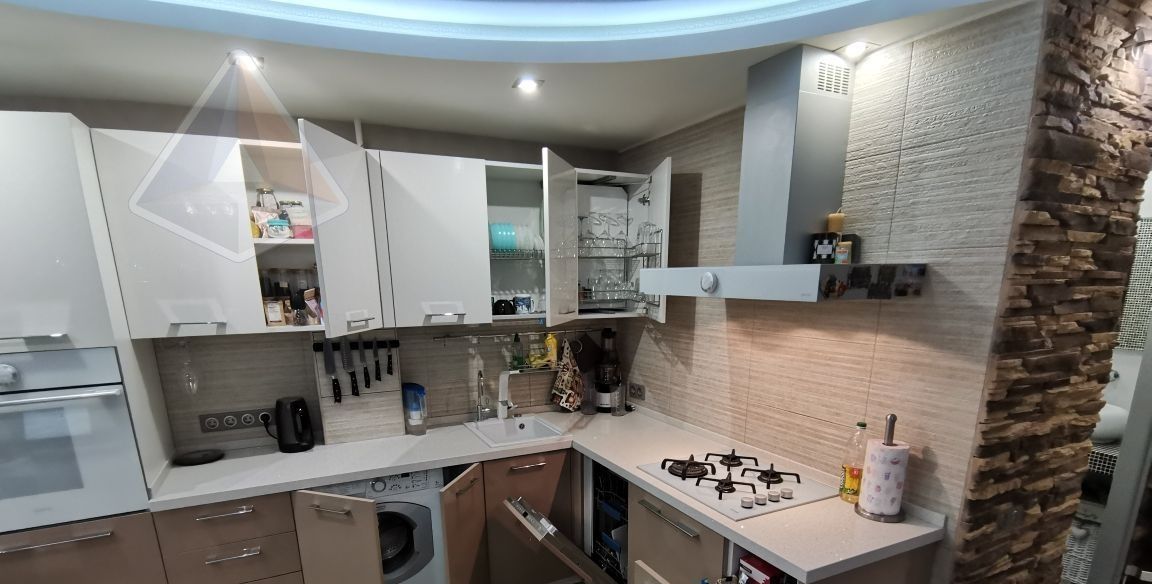 Премиум-техника: кухня под заказ (искусственный камень), посудомойка, стиральная машина, духовка Gorenje, холодильник Indesit, микроволновка, кондиционер (на 45 м²). Паркетная доска, тёплый пол на балконе с подсветкой и остеклением, ванна с тропическим душем, зеркало с подогревом, Smart TV 55" 4K. Мебель: кровать, шкафы, диван-реcliner. Новые коммуникации, счётчики, электрика.