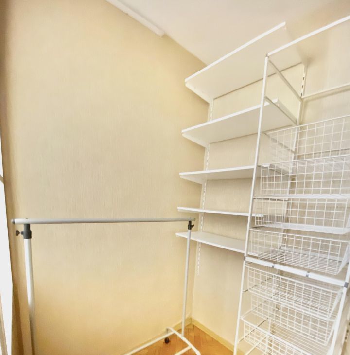 Продуманная планировка: Большая жилая комната (24 кв. м) с просторной гардеробной и системой хранения, функциональная кухня (8 кв. м) и раздельный санузел с полноценной ванной, прихожая со шкафом-купе для верхней одежды.