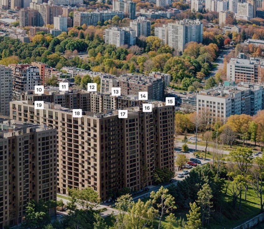 Дом находится между двух обустроенных парков.