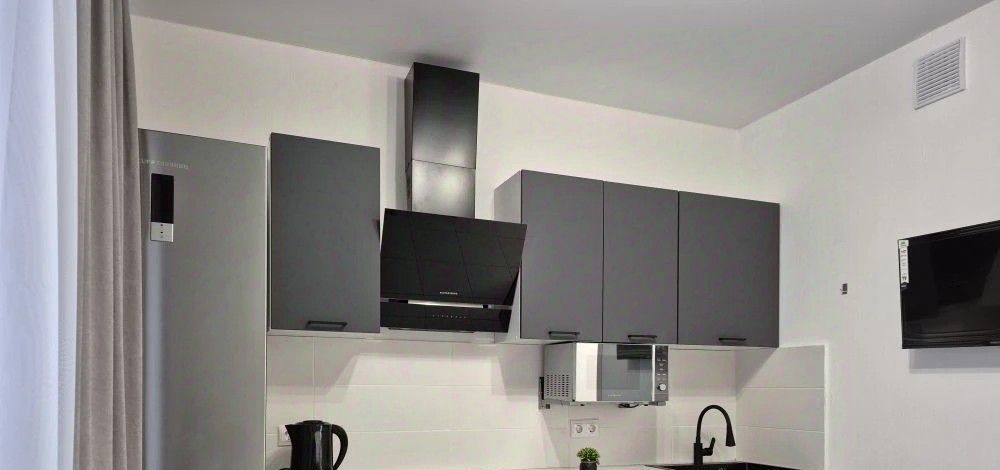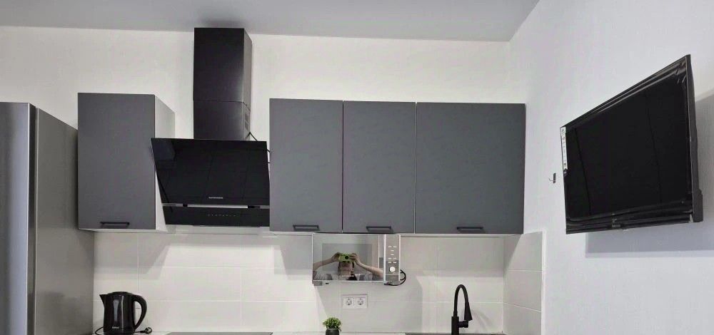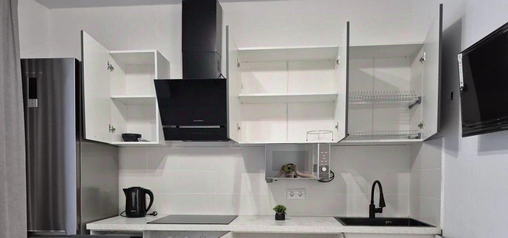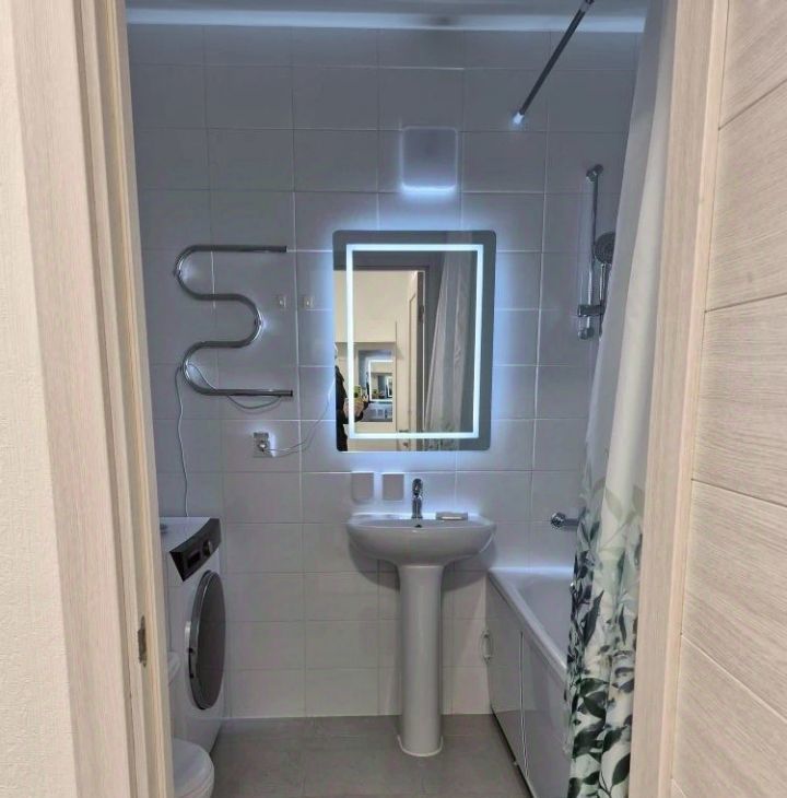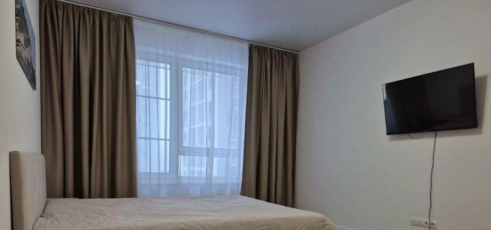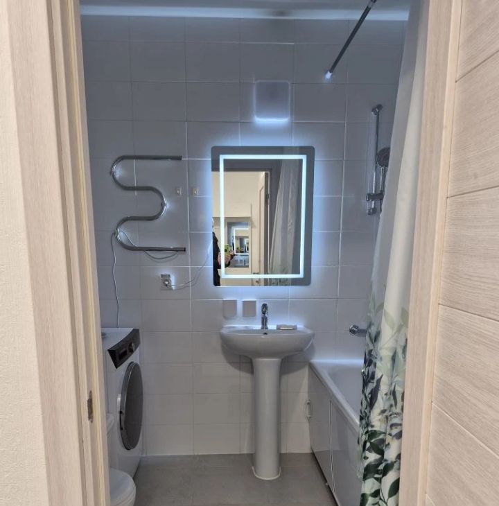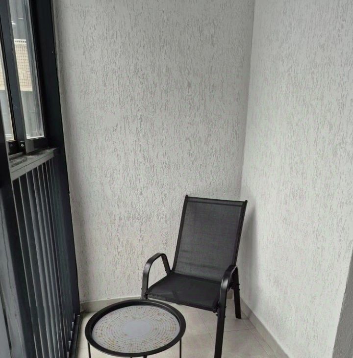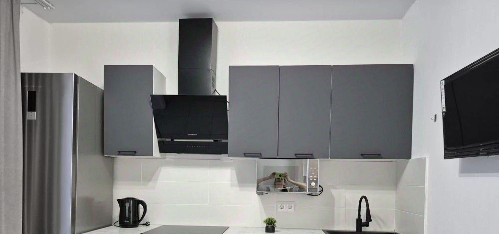 В квартире есть всё необходимое для проживания в комфортных условиях: кухонный гарнитур, обеденная группа, варочная панель (не индукция), встроенный духовой шкаф, холодильник, вытяжка, электрический чайник, телевизор на кухне смарт ТВ 32', стиральная машина, телевизор в комнате смарт ТВ 43', вместительный шкаф, удобная двухспальная кровать с ортопедическим матрасом 160*200. Также имеется сушилка для белья. Лоджия обустроена удобными креслами и металлическим столиком для наслаждения чашечкой кофе с видом на двор.