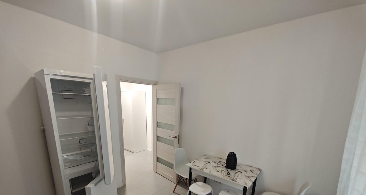 Квартира состоит из просторной гостинной, оборудованной кухни и светлой ванной комнаты.