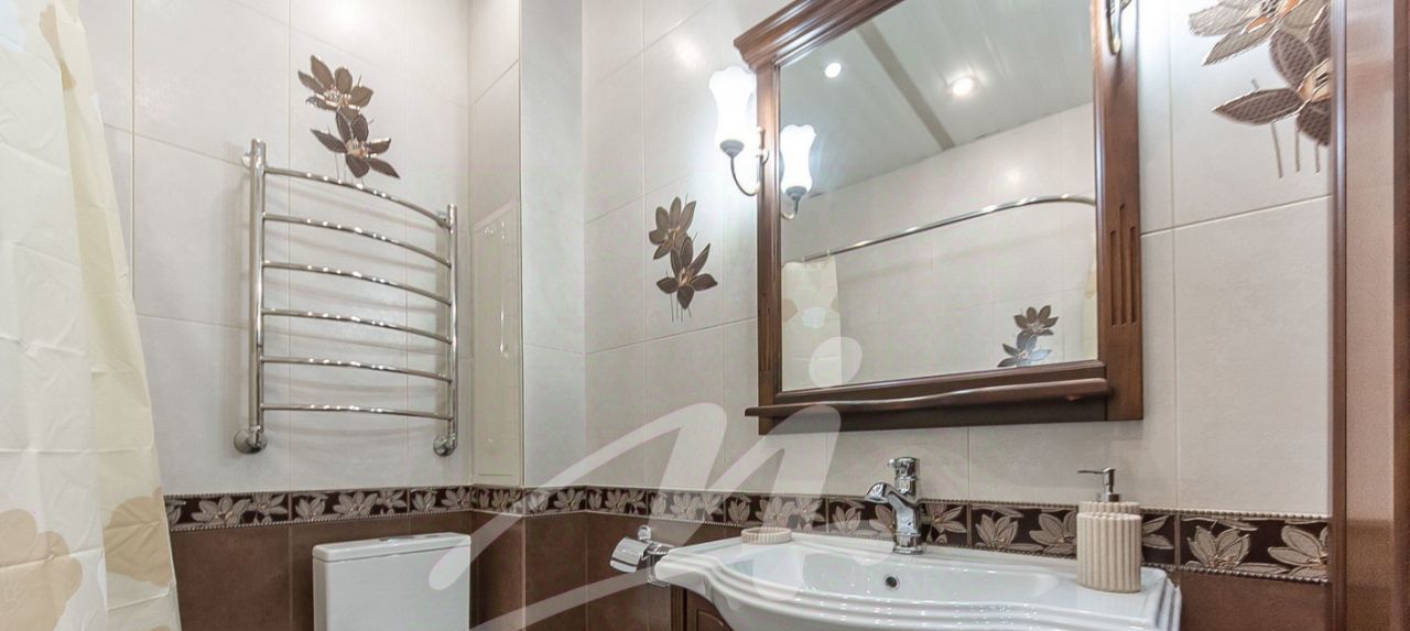 Квартира полностью меблирована и оборудована качественной техникой Korting. ДВА КОНДИЦИОНЕРА и ПОСУДОМОЕЧНАЯ МАШИНА. В столовой и комнате итальянская мебель. Дубовый паркет. Стены: штукатурка - декоративный песок, покрытый лаком.