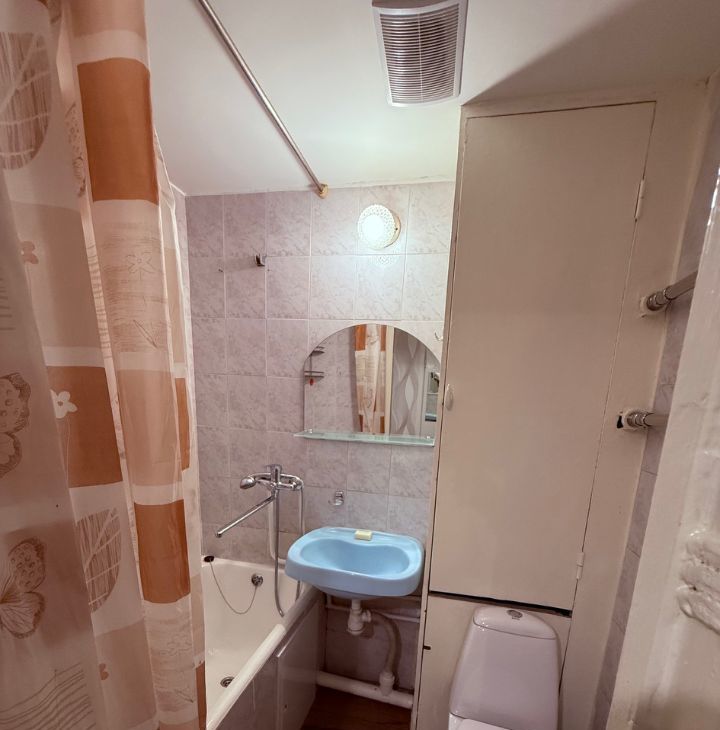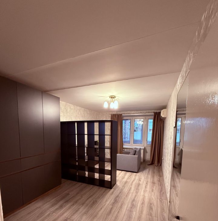 Просторная однокомнатная квартира в Центральном административном округе. Общая площадь почти 40 квадратов. Большая застекленная лоджия с видом на двор и Ладожскую улицу. Большая площадь кухни.