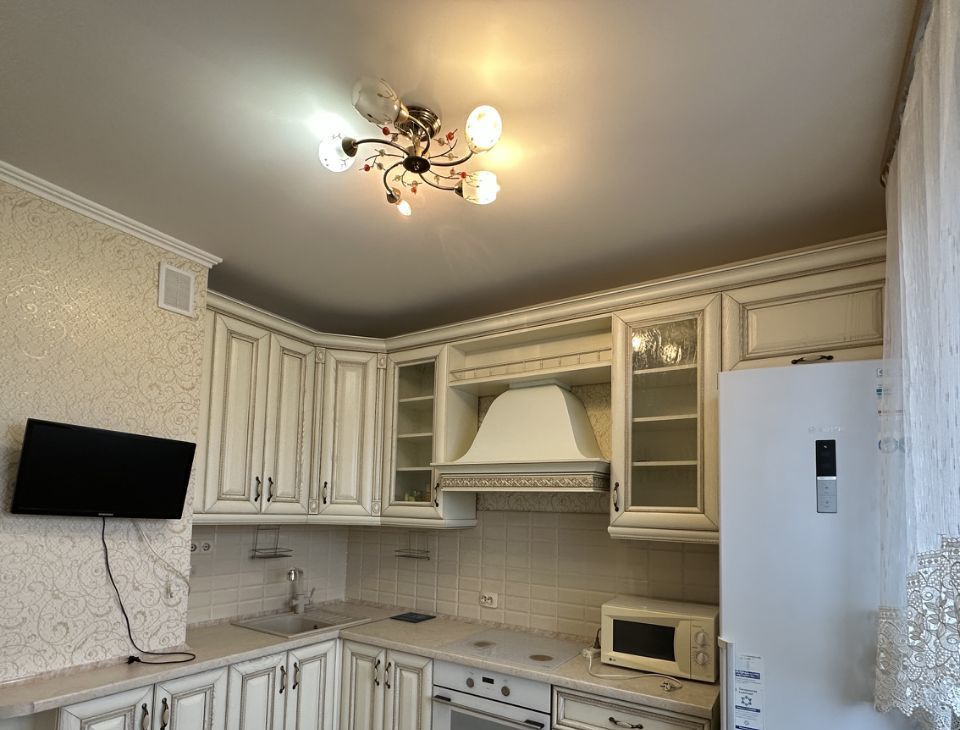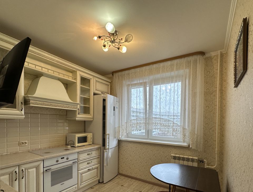 Квартира расположена на 9 этаже панельного дома 1983 года постройки. В квартире выполнен евро ремонт, что видно по современному дизайну и качественным материалам. Просторная кухня площадью 9 м² оснащена всей необходимой техникой: холодильник, плита, микроволновая печь и стиральная машина.