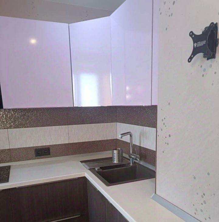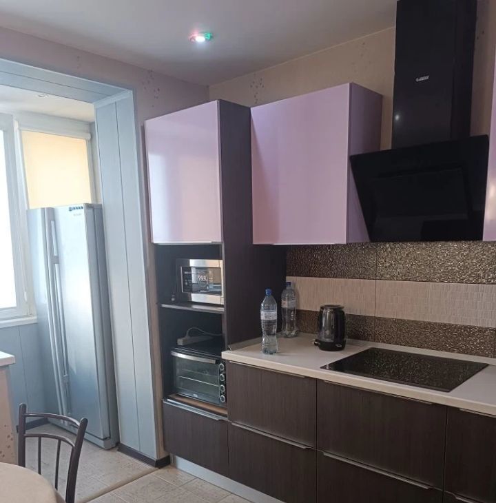 - кухня для ценителей кулинарного исскуства, объединенная с лоджией, где установлена встроенная кухня с вытяжкой, микроволновкой, холодильником и духовым шкафом, а также
