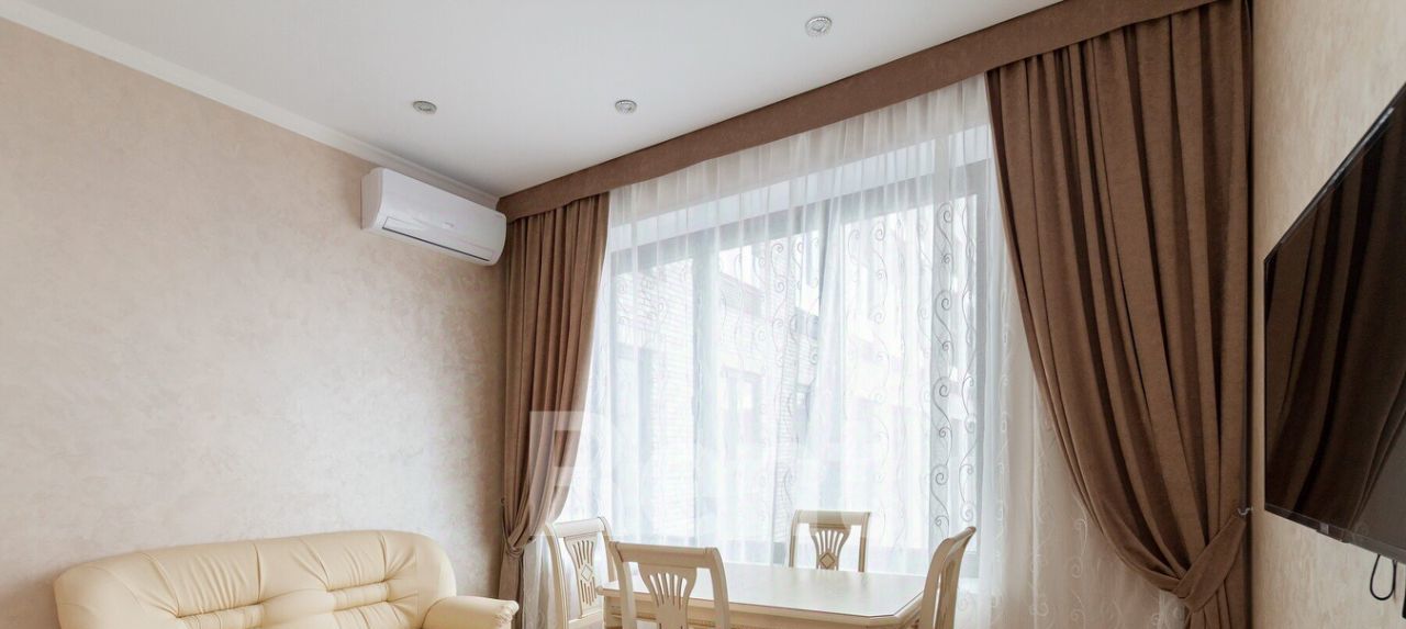 В комплексе "Царская площадь" предлагается светлая двухкомнатная квартира. Молочно-бежевая отделка дополнена элегантной мебелью, для комфортного климата установлен пол с подогревом и кондиционер. Поддерживать порядок в доме поможет гардеробная и кладовая. Современная бытовая техника на кухне, включая духовую печь, поможет в готовке.