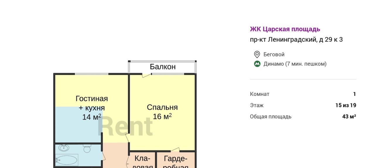 1-к кв. Москва Ленинградский просп., 29к3 (43.0 м²)