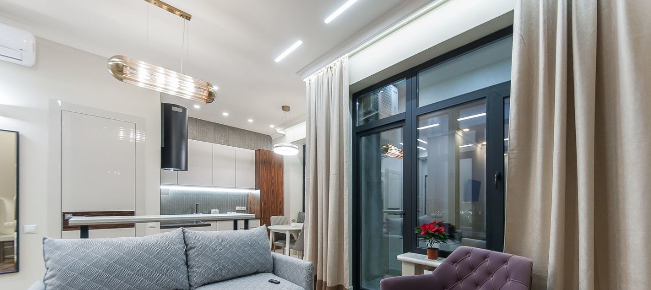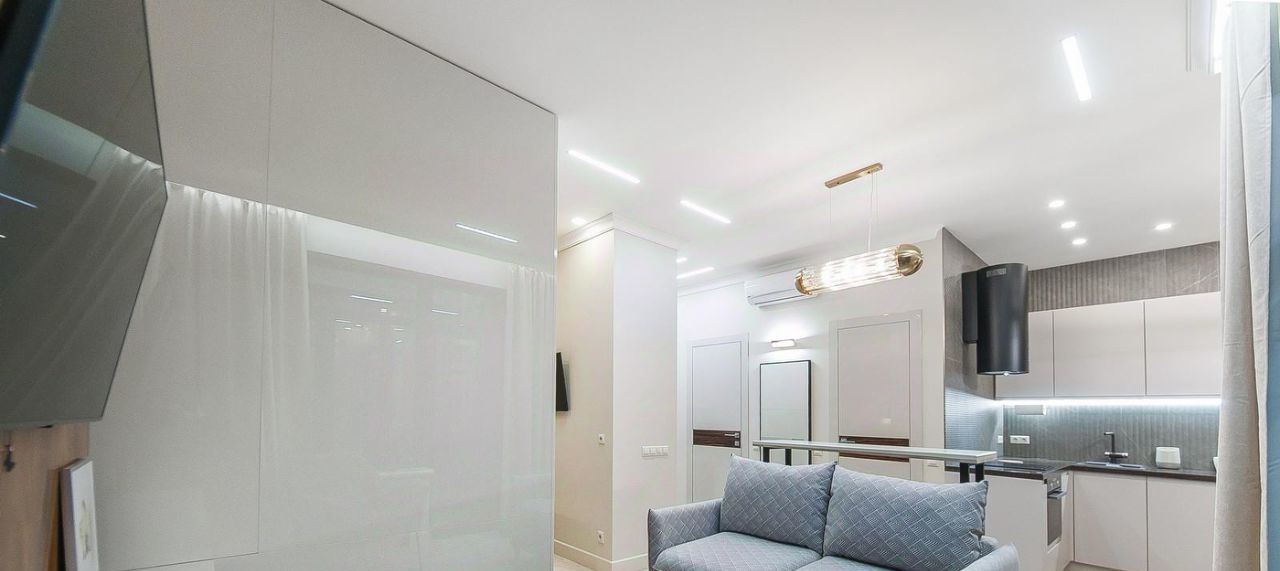 Для комфортного проживания в наличии: встроенная кухня с полным набором бытовой техники (посудомоечная машина, духовка, микроволновка, холодильник, вытяжка)