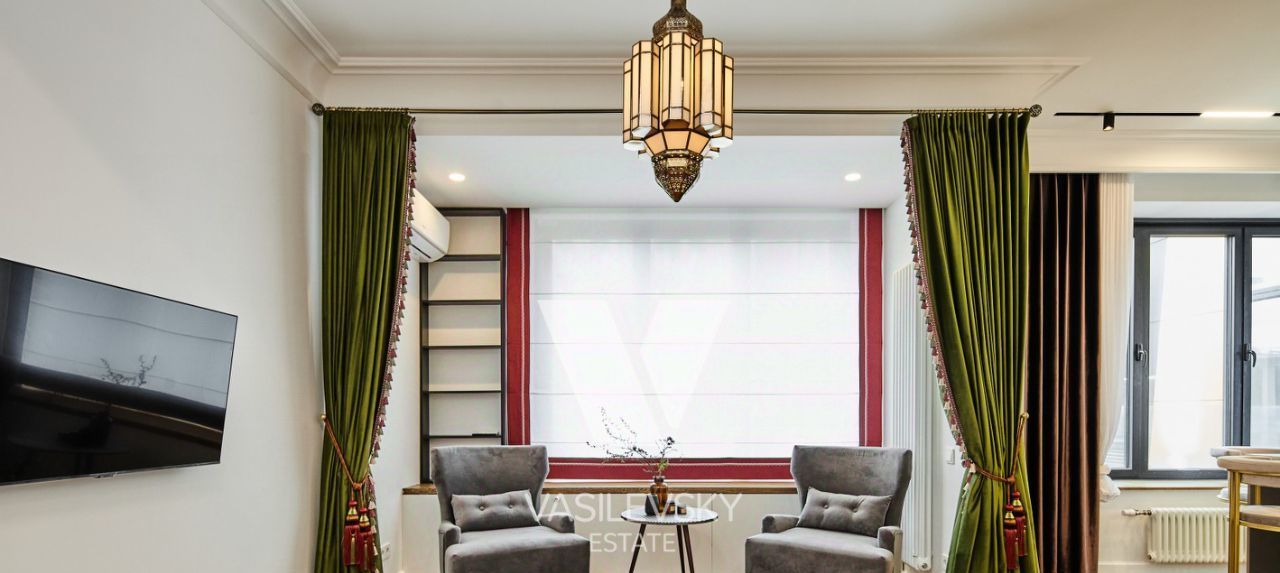 На первом этаже уютная зона для встреч с своей уборной комнатой. Дом отличается необычной архитектурной концепцией в сочетании с удачным расположением. Жилой комплекс состоит из четырех корпусов, каждый из которых уникален по своему дизайну. На территории комплекса расположен памятник архитектуры Царский павильон. Вы соприкоснетесь с удивительной эпохой правления царей династии Романовых, от Михаила Федоровича до Николая II, каждый из которых внёс значительный вклад в развитие национальной архитектуры. Фасады зданий стали своего рода энциклопедией стилей русской архитектуры, показанной через призму истории правления династии Романовых. Вам выпала огромная удача, так как это один из самых престижных районов Москвы. Обилие зелени вокруг и очень развитая инфраструктура. Облагороженная, охраняемая территория с фонтанами, зонами отдыха с ландшафтным дизайном от бюро Wowhouse, пешеходная галерея, современные детские площадки, подземный паркинг.