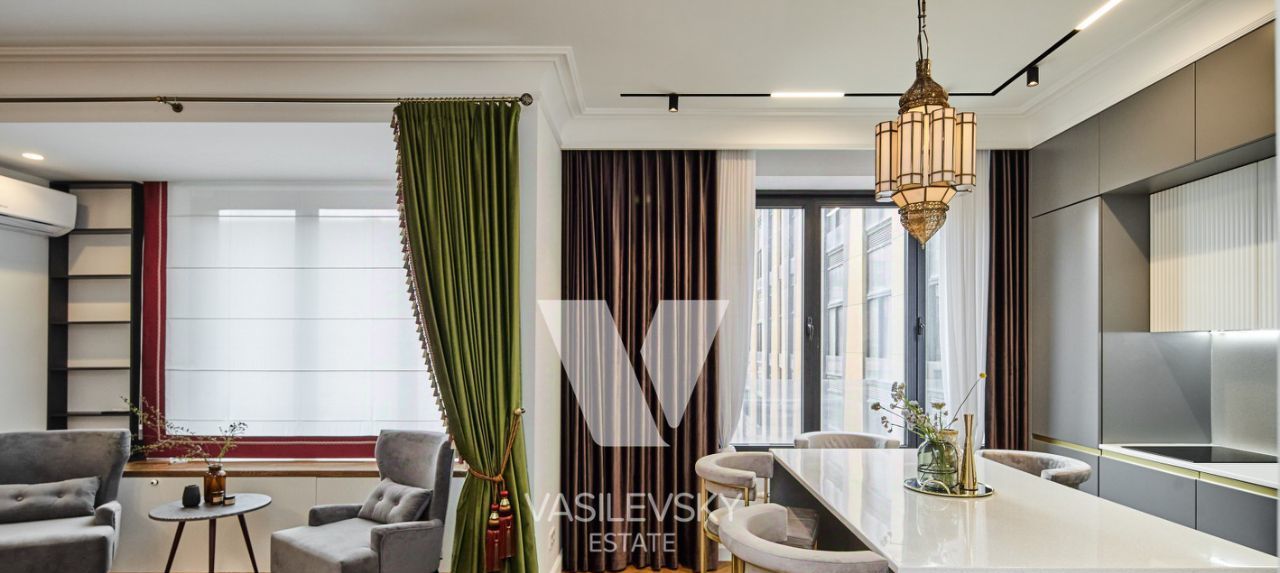 Вы сможете насладиться отдыхом после шумных будней мегаполиса. Просторная прихожая с зеркалом и компактной гардеробной. Паркетный пол - изюминка квартиры. Дизайнерская кухня со встроенной техникой, изысканное место для кулинарных экспериментов. Гостиная для приятных мероприятий. Лаунж зона для светских бесед и не только. По-царски удобная огромная кровать. Кондиционер подарит приятную прохладу в знойные дни. Удивительной красоты дизайнерские предметы интерьера будут радовать каждый день. Санузел совмещён. Ярко, стильно, удобно. Как приятно понежиться в дизайнерской ванной с бокалом игристого! ;)