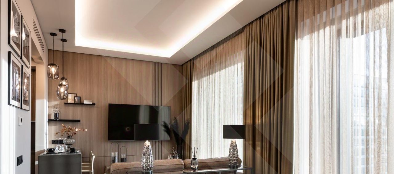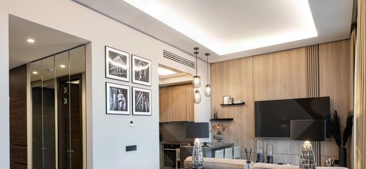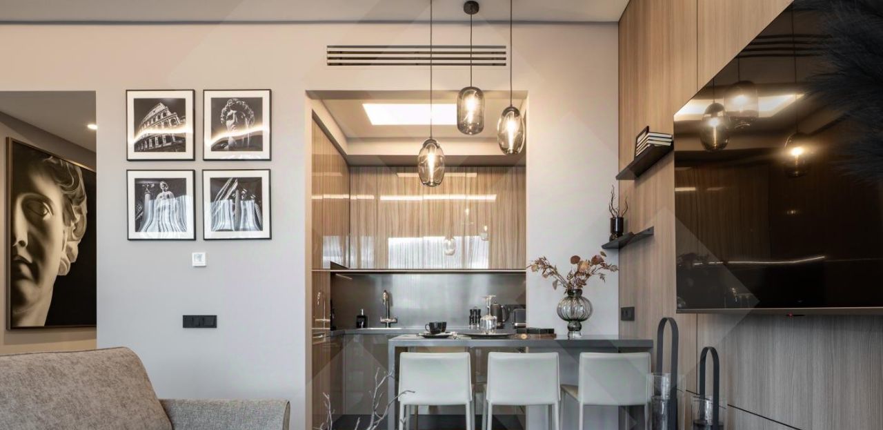 Духовой шкаф с функцией микроволновой печи, варочная панель, вытяжка, посудомоечная машина, стиральная машина с функцией сушки, Смарт ТВ и центральное кондиционирование сделают ваше проживание комфортным.