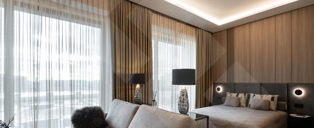 Два панорамных окна наполняют пространство естественным светом, делая его еще более просторным и приятным для жизни.