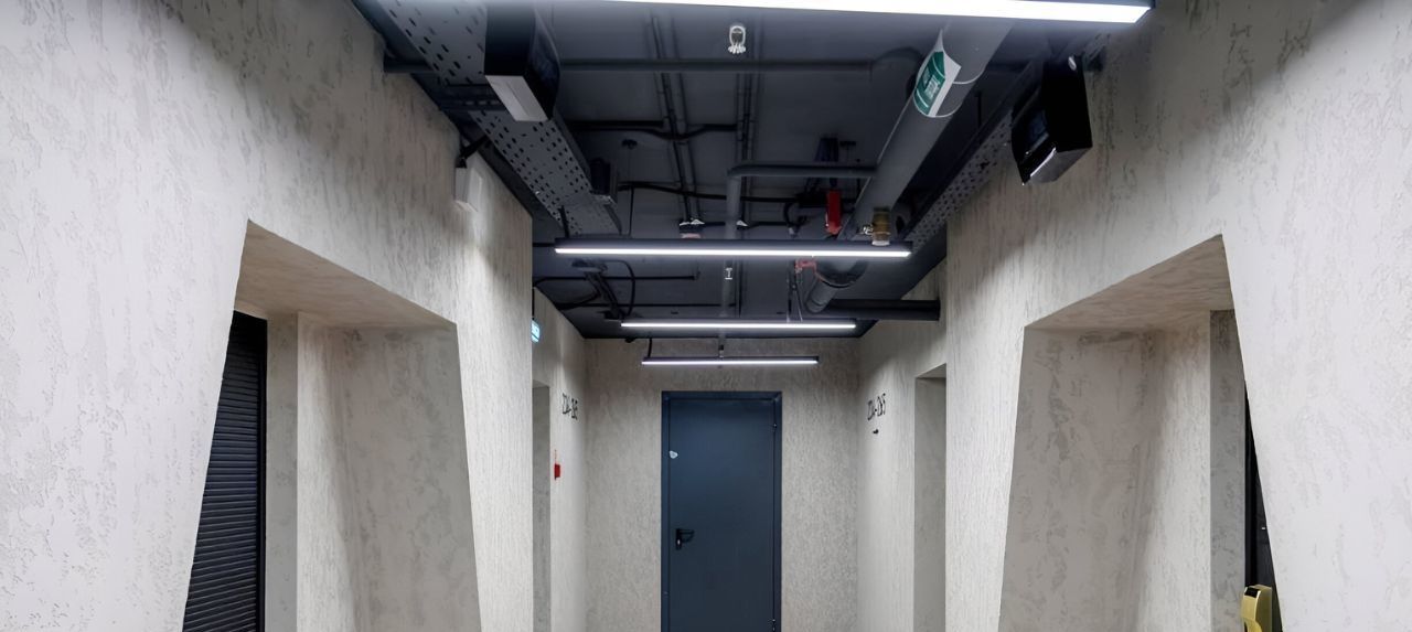 На первом этаже сразу на выходе из дома спуск в почасовую баню, где можно посидеть своей компанией со своей едой и напитками, там же есть услуги салона красоты и любые масажи)