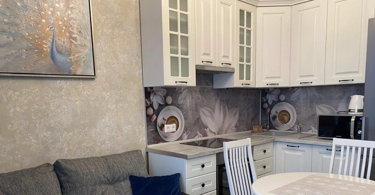 Квартира оборудована всей необходимой бытовой техникой: варочная панель, духовой шкаф, микроволновка, вытяжка, холодильник, посудомоечная машина, стиральная машина, кондиционер.