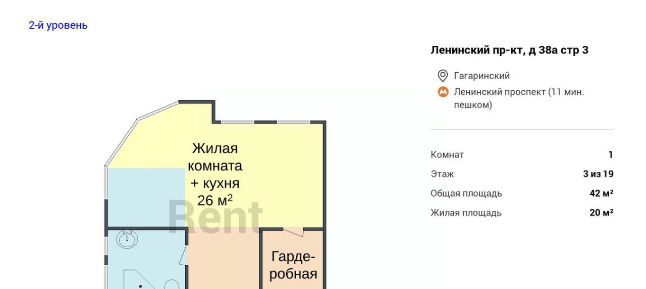 1-к кв. Москва Ленинский просп., 38Ак3 (42.0 м²)